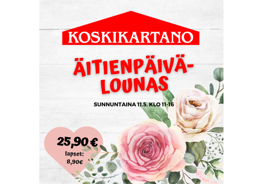 Äitienpäivä lounasbuffet tarjolla su 11.5. klo 11-16.