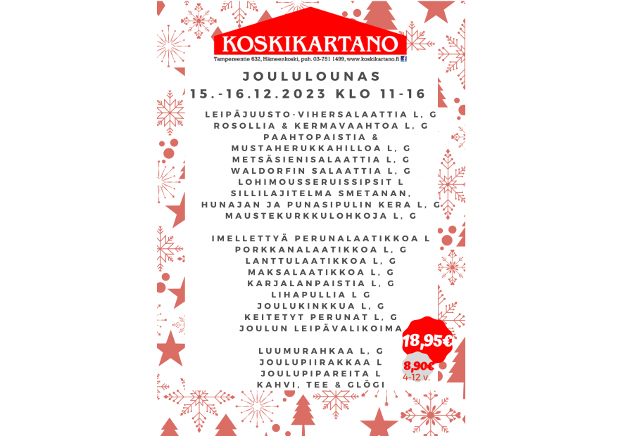 Suosittu joululounas kahtena päivänä, 15.-16.12. klo 11-16.