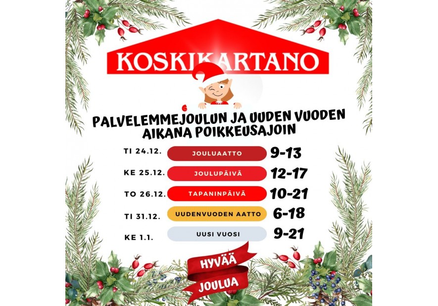 Joulun ja uuden vuoden aukioloajat