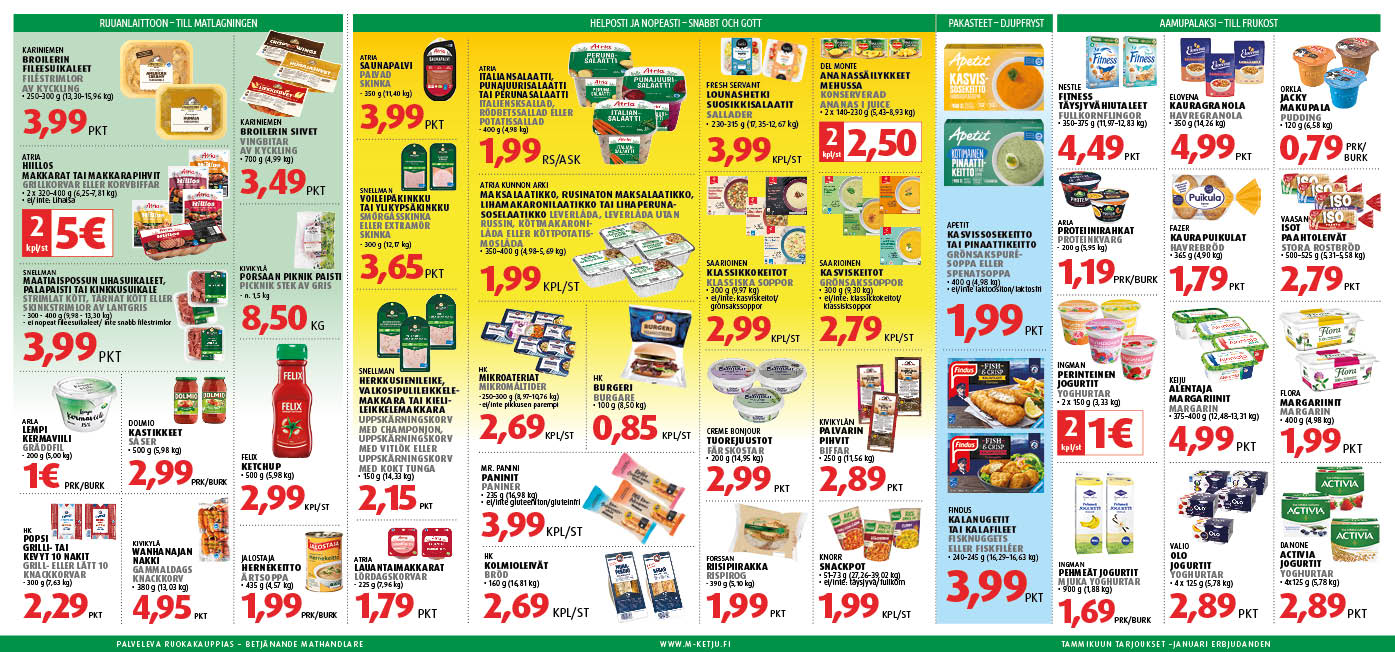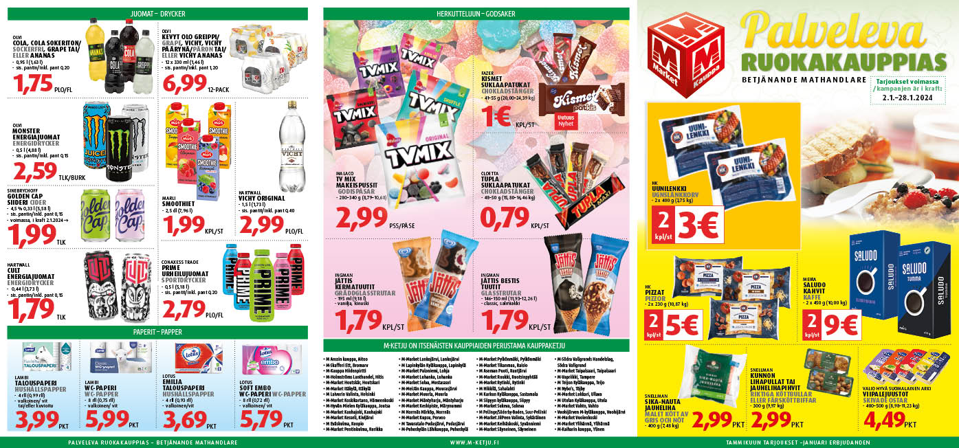 M-marketin tammikuun tarjoukset 11/01/2024 Tästä voit ladata tarjouskirjeen pdf-tiedostona. Tykkää tästä Facebook Twitter Pinterest LinkedIn Tumblr