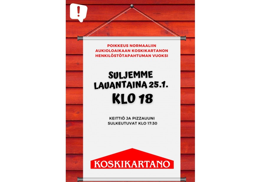 Suljemme la 25.1. klo 18